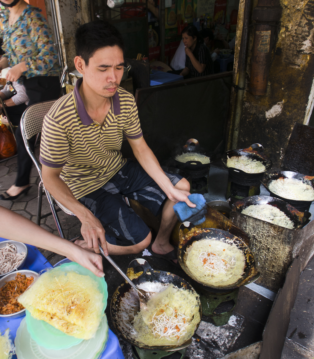 Interestingly, in the middle of Hanoi sits Lake Hoan Kiem. Next to it, there is a huge roundabout where during peak hours would see endless streams of motorbikes, cars and pedestrians. Like a russian roulette, every road user knows the rules and somehow, as in other places in Vietnam, in order there is chaos. The introduction of traffic lights or any kind of order would have cause a massive traffic congestion. Traffic, not very different from the South. Food vendors and stalls are everywhere in the main district and although the dishes served varies, it’s strangely familiar.
